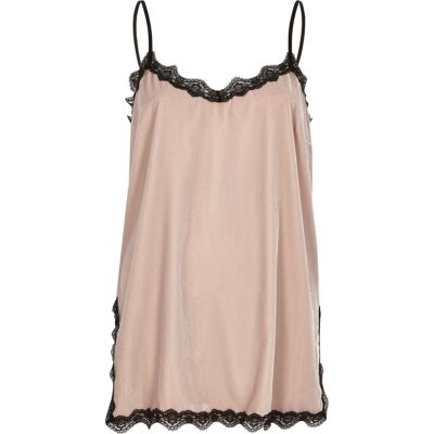 Blush pink velvet lace trim cami cami / sleeveless tops tops women